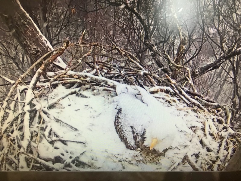 It looks like it MAY start to warm up next week. Hard to get excited about the pumpkin season with snow on the ground I promise I will start posting pumpkin related things as soon as the time comes. I wanted to give an update on the PA Eagle nest in Hanover the the game commission has cameras on. It was a tough week for the couple with the late season snow.