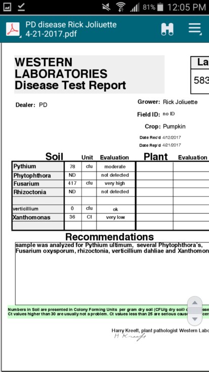 Last year's test for disease in our patch