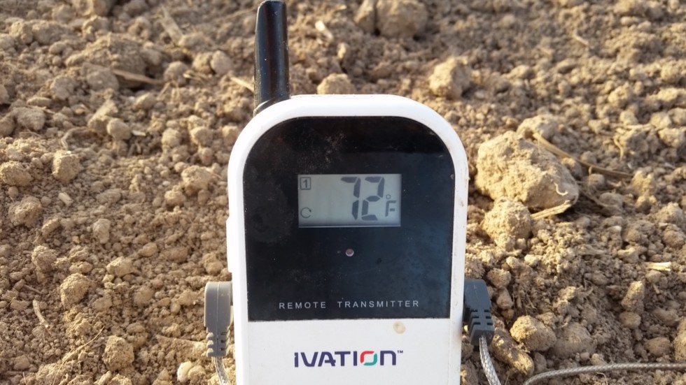 Soil temp in patch is 55 degrees, soil in the two hoops I put up yesterday is 72 degrees, the cables work and work well.