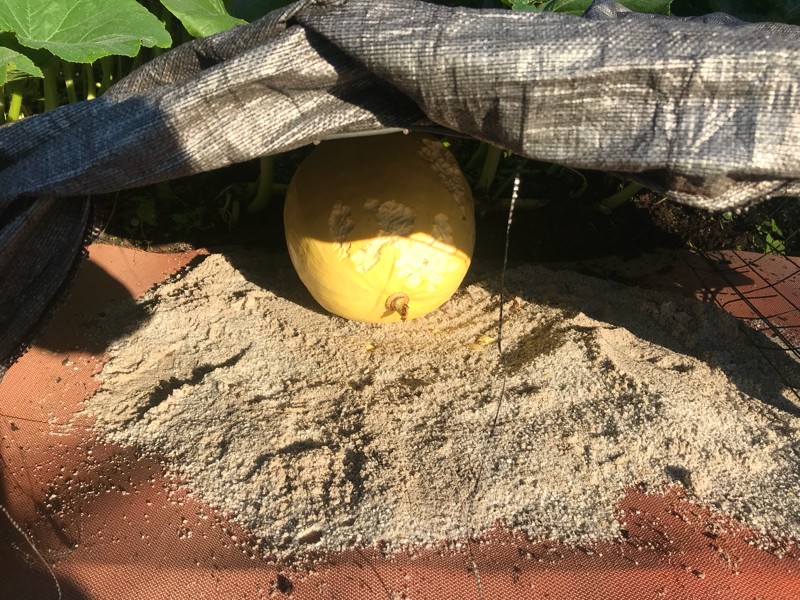 What a difference a day makes. This hobby can be demoralizing. I have a fence around the perimeter of the patch and also had some interior fencing around the interior plants to keep any animals out. I had taken most of the inside fencing down to let the vines fill in and bury them. The 1810 werner our earliest pollination had a cage over it and a tarp on top but the end was open. This morning I found where something decided to make a snack out of it. Crap. All this work.