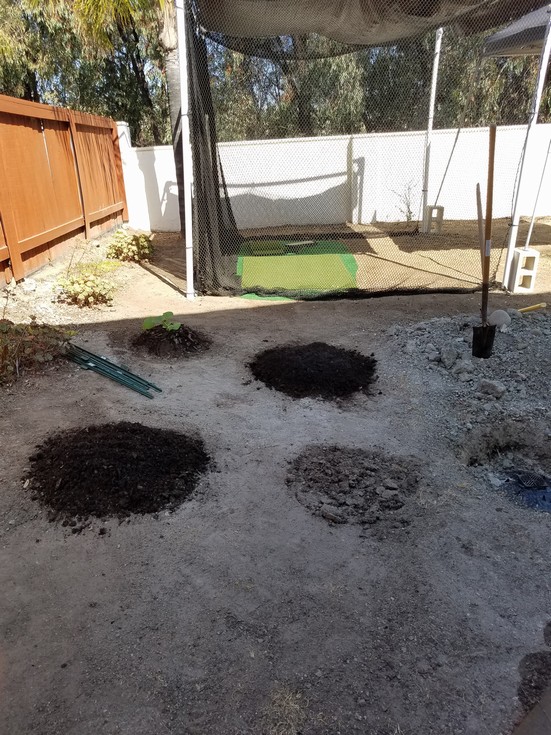 Two more mounds and working on the last. The digging has been a total !@#$*&^%$#@!@!@!. =>]