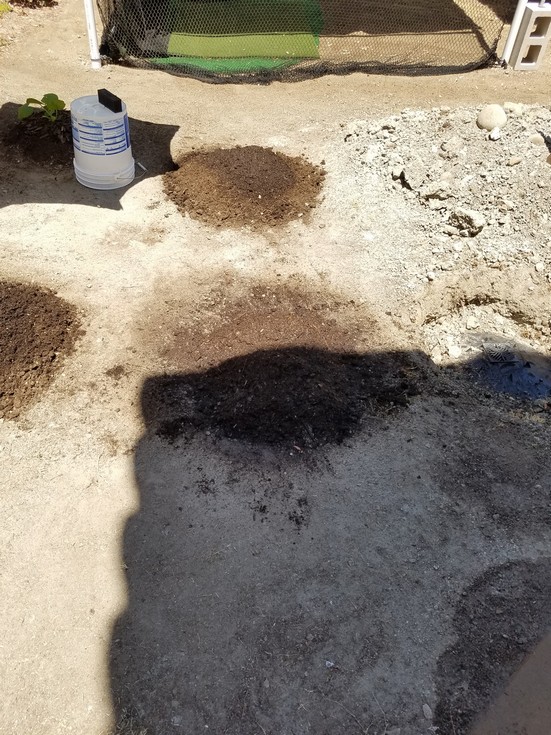 Finally, all four mounds are built and the tough digging is over. (I honestly don't think we could have put up with more digging.)