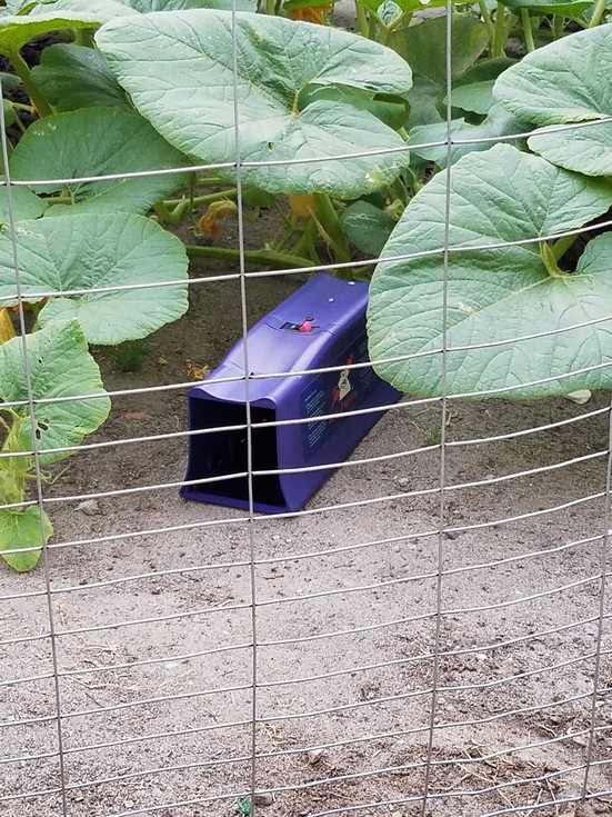 Meet the rat zapper! It's baited with peanut butter, we'll see if the rat can resist the sweet smell. If not, this trap packs an 8,000 volt jolt for a duration of up to two minutes. I'll use it until all rodents get the message to stay out of our pumpkin patch!!! >:[