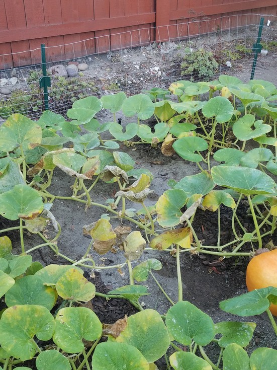There hasn't been a lot to update on. We have a handful of pumpkins now, but I believe this intense heat is ruining our chances to actually have some true "big max". Our pumpkins are definitely not "big max". They're just regular sized pumpkins and that bums me out. Even our largest isn't really growing much and now we have yellowing leaves. =/ What's causing this? I am starting to think it's water related. I'm not sure... We're watering them for 15 mins. twice a day every day, which according to others each plant needs 15-20 gallons of water twice a week. We did the math according to our drippers and what we're doing should suffice. I mean how much water is too much? If you have any input, please share it. I'm really getting frustrated with it now. As far as our battle with rats, I think that's over. I seriously thought it would never end. The electric fence has finally sent a clear message for them to stay out!! I no longer see the rascals on my cameras. ;) The only thing we're dealing with now are random grasshoppers, powdery mildew and the vines aborting new pumpkins. Back to the yellowing of the leaves. I would really like to know why that's happening, so please do share once you look at the latest picture. I'll post again soon.