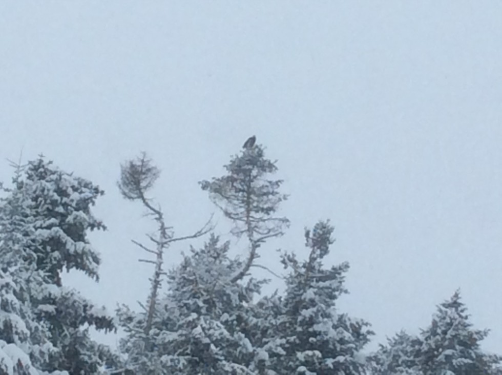 Guarding the patch is a regular visitor, atop the highest tree in our forest.
