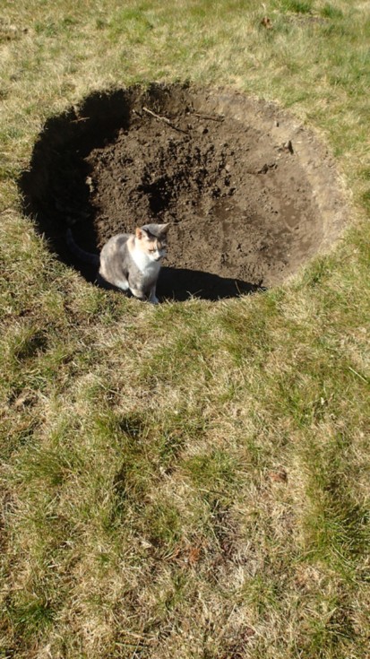 Going to have Greg the Tractor Guy finish digging the hole and scrape off the lawn on the far side of the hole tomorrow. For next year, I will prep my soil in the autumn like I should! I am getting a late start, I know, so I'll see what I can do with it.