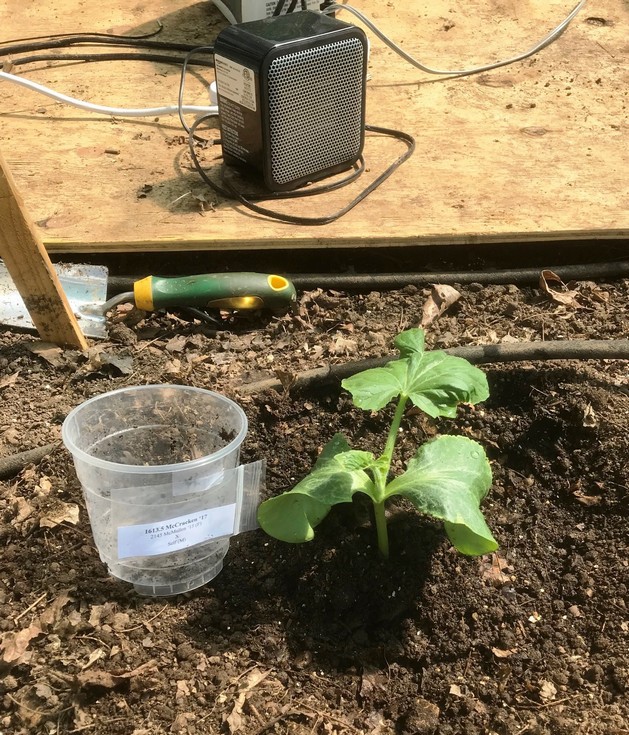 Sun out, temp 95 deg in greenhouse, dirt temp consistently 62 deg over cables. Night temps holding in mid 50�s by morning and promptly up to 80 shortly after sunrise. Upcoming temp show 50-60�s � the heaters should add another 10 deg to that, so - - - - - PLANTED the 1613 McCracken to officialyl start the season 3 weeks earlier than last year. Trying to beat the fungus in late Aug-Sept. 1501 to plant in 4-5 days a couple feet to the left in the same hill � choosing the best to occupy the west side of the patch for the summer. East side will keep either the 1795 or 1495. Hmmmm � may wind up with double McCrackens � Dennis, is that good luck or doom?