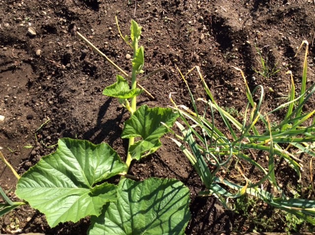 Janet, the other 1043 Chan plant escaping down past the garlic into the lower garden. She�s ramped it up and is growing 6-8� a day now.