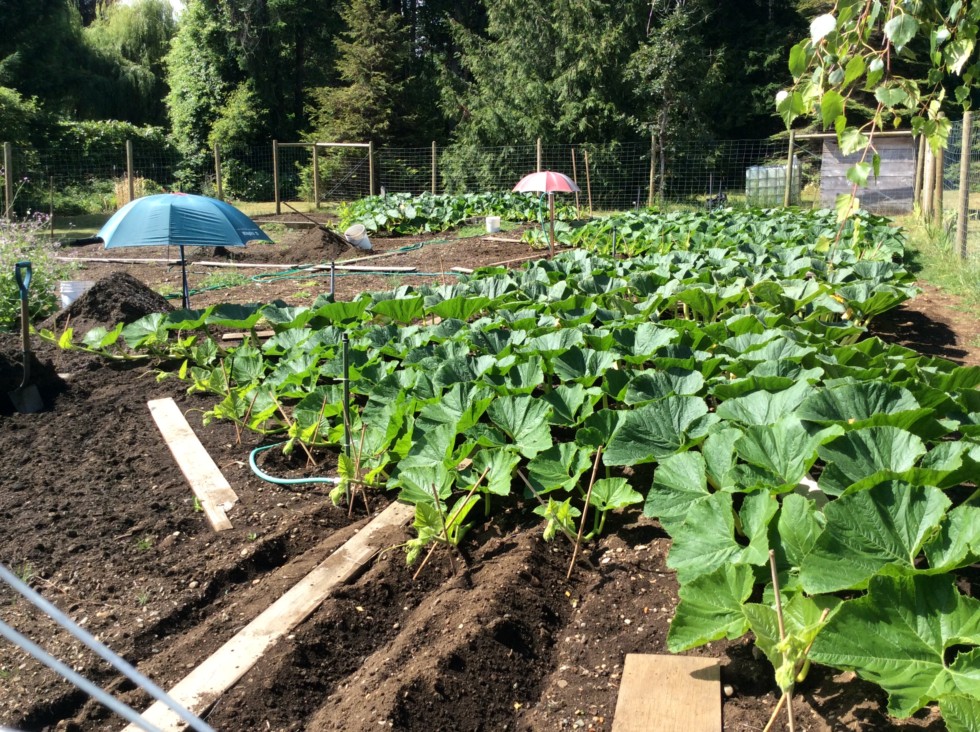 Nice warm humid day today, vine burying and vine adjusting at 10am doesn�t usually happen in our patch. Nice fresh rain yesterday meant we couldn�t golf, but the plants really enjoyed it.