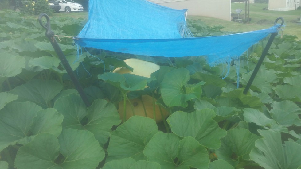 Tiny has coasted over the 200 lb mark, contentedly laying in the shade, chewing her cud and doing all the other things pumpkins like to do.