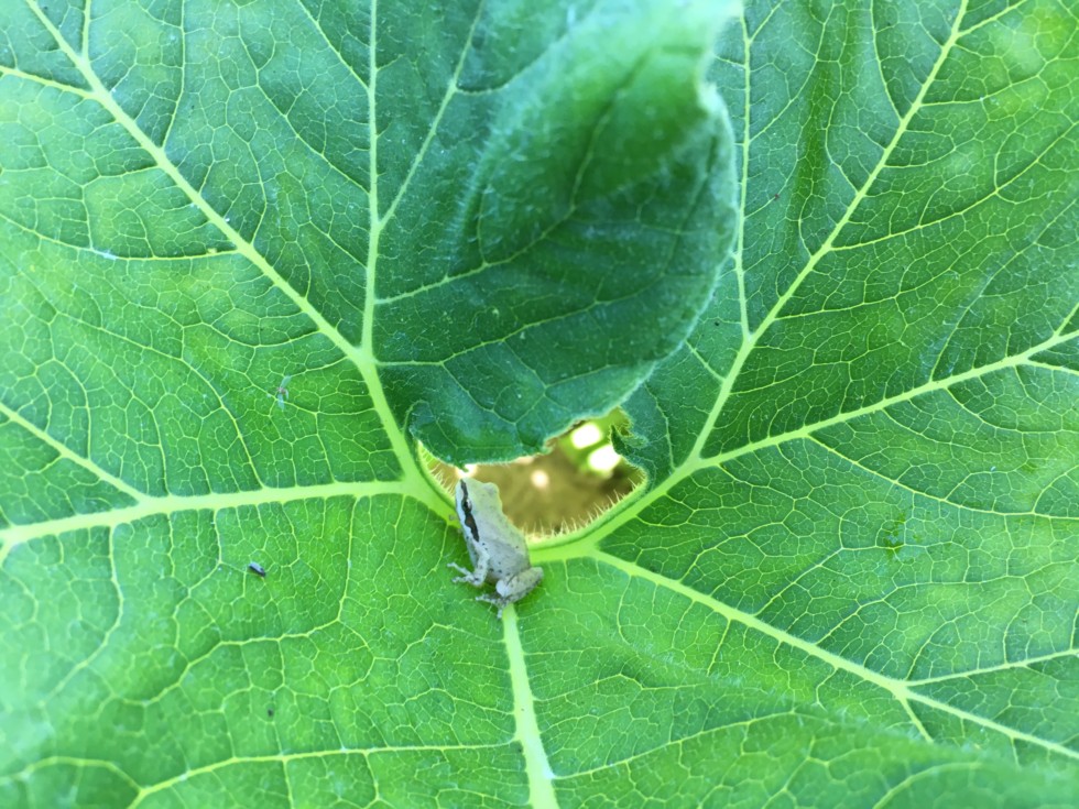 Beautiful tree frog on a giant kin leaf.