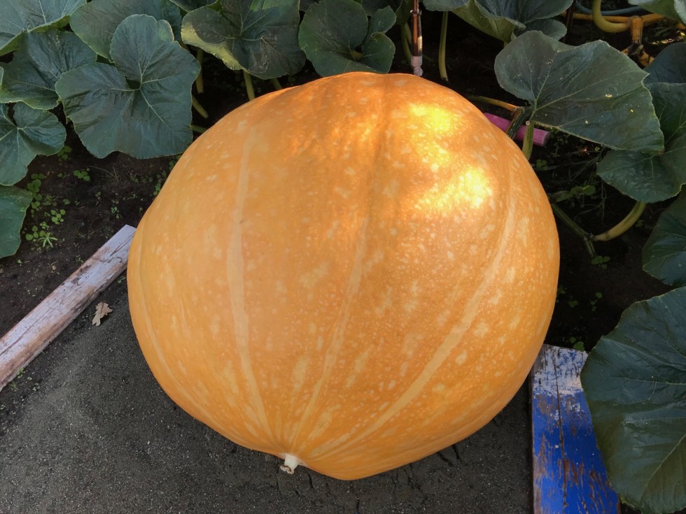 Day 50 for the upper 1043 Chan and isn�t she a beauty!! Very orange, round and smooth. She will get the tape wrapped around her tomorrow for the official 50 day numbers and another photo opportunity with the blankets off. My suspicion is that the growth curve is still not backing off on this one,but never got the huge numbers that it�s patchmate got during July and August. Still a very good chance that this one will surpass 1K, but imagine she will be in the running for �prettiest� anywhere we take her.