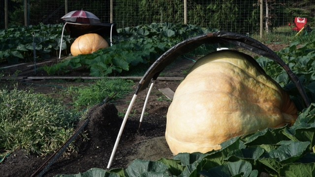 Blankets off for a little show and tell/photo-op session. Upper and lower 1043 Chan plants and pumpkins doing well.