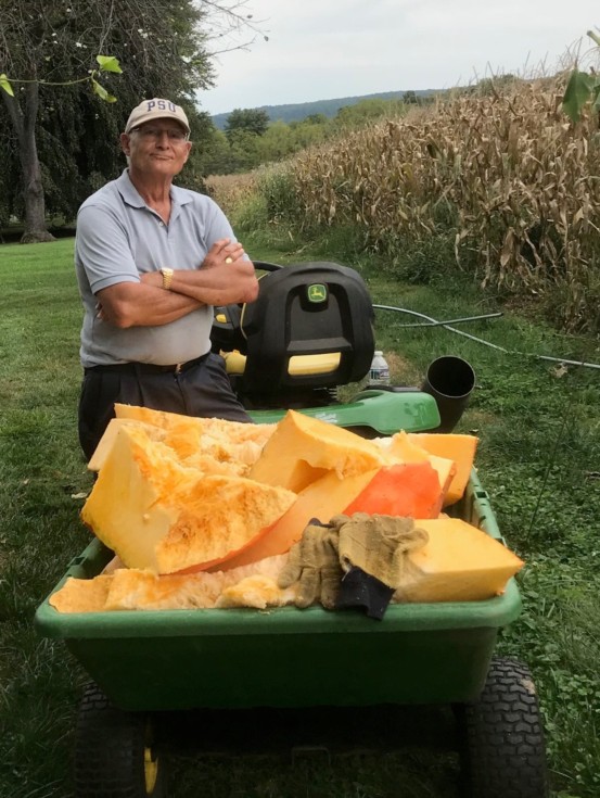 Lost the 500 lb bright orange 1501 Wagner to rot � the kin grew over 2 soaker hoses and so remained wet. Never saw that under the leaves � my fault. Not gonna let that happen again next year. The other 2 200+ kins on that vine transported to the entry of my wife�s swim school � the kids are going bonkers over how big they are. We had a �Guess the weight� of the 260 lb. Guesses ranged from 20 lbs to 10,000 lbs (that was the only guess over 1,000 lbs, of which there were several). 3-4 yr olds are easily impressed.