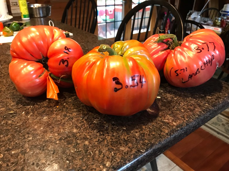 Lots of my last tomatoes are flashing. Val and I trying to figure out if we can make a trip to Saratoga. We have our orange pumpkin we could get a weight on along with a mediocre field pumpkin. There should be a Momate or two that are peaking. I don�t think it will add to my team challenge entries but it may be close. I�m getting good at the 3 to 3.5 range. I guess that is what a B grower does.
