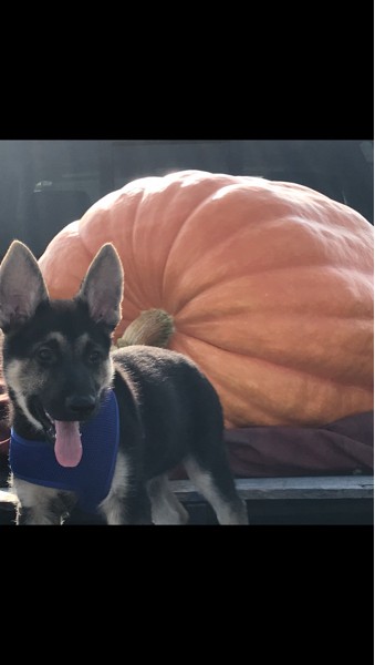 Val and I did take a ride to Roba�s family farm to deliver one of our orange pumpkins. Maggie loved the place. It�s to bad they gave up their GPC weighoff. It was a great venue. The pumpkin was grown on a 575 wolf offspring.