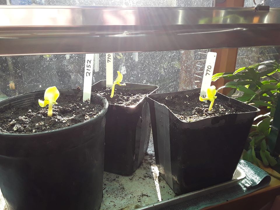 Plants transplanted into bigger pots and under the grow light.