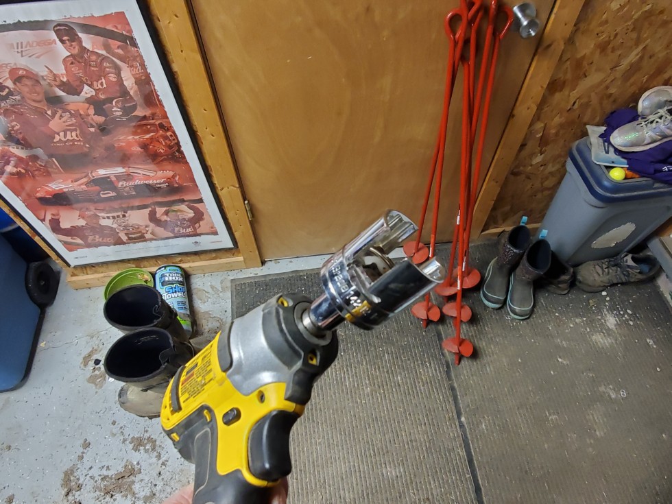 40" ground anchors bottoms should be in almost 30" of clay. Notched a cheap 1 1/4 socket worked pretty well getting them in. Might borrow the Milwaukee 1/2" drive from work. That was a work out for my 3/8 dewalt. Putting one every 8 ft down the sides and 2 on each end. Hoping this will be alot better than attaching my ratchet strap material to the baseboards. Doing a little at a time just incase this covid 19 takes away my income