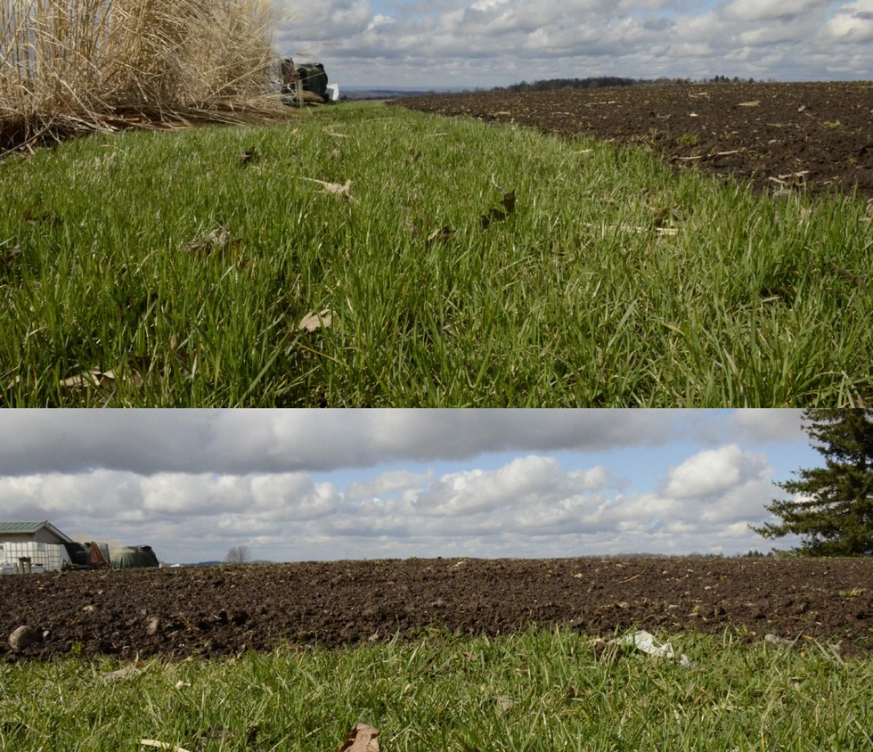 Late last summer I made my pumpkin patch a bit smaller. Instead of being 100'x 120', now it is 76'x 120'. The difference with the 24' of soil, I took that soil and pushed it onto the center of the pumpkin patch than tapered it towards all four sides of the patch. The sides are about 6" above the lawn level and tapper up to about a foot and a half in the center. One huge raised bed pumpkin patch now. The photo gives an idea of how much the center is raised above the sides. My patch did drain good before, but I see a huge difference already this year with some heavy rains we have had