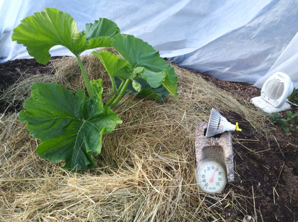 Squash plant & hay. It's amongst the biggest young plants I have ever had. Might have been low on phosphorous? Looking better now but still may be low idk. Im sure everyone else will catch up to me soon as I juggle all the usual no-soil-test issues.