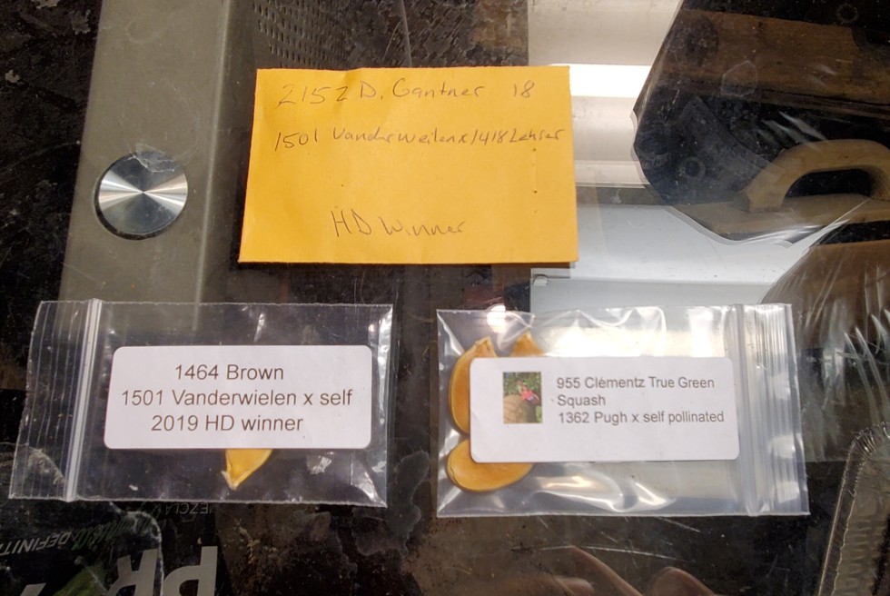 And round 3 is started. 2152 Gantner, 1464 Brown, and a pair of 955 Clementz green squash round out my giants for the year. Bushel gourds, field pumpkins, and long gourds will get started in a couple weeks.