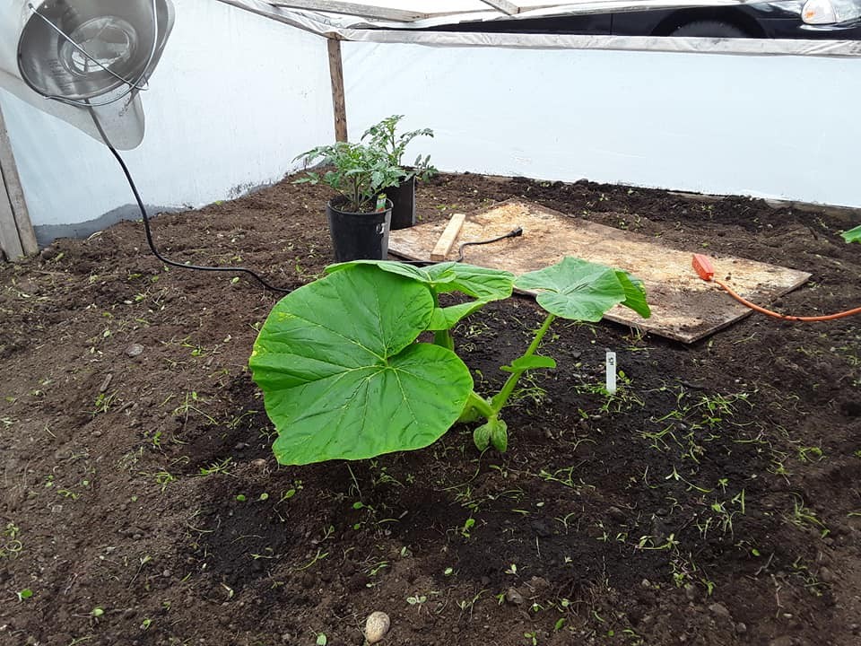 The 571 Grubbs is doing fabulous the heat lamp really helps. The 5th true leaf is open and it's getting ready to vine out.