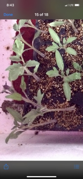 Here is another photo of the 7.64�s. Not sure what that�s about. Not wilting. The stem is firm. No ferts. They will be transplanted to larger pots on Wednesday and put into the greenhouse.