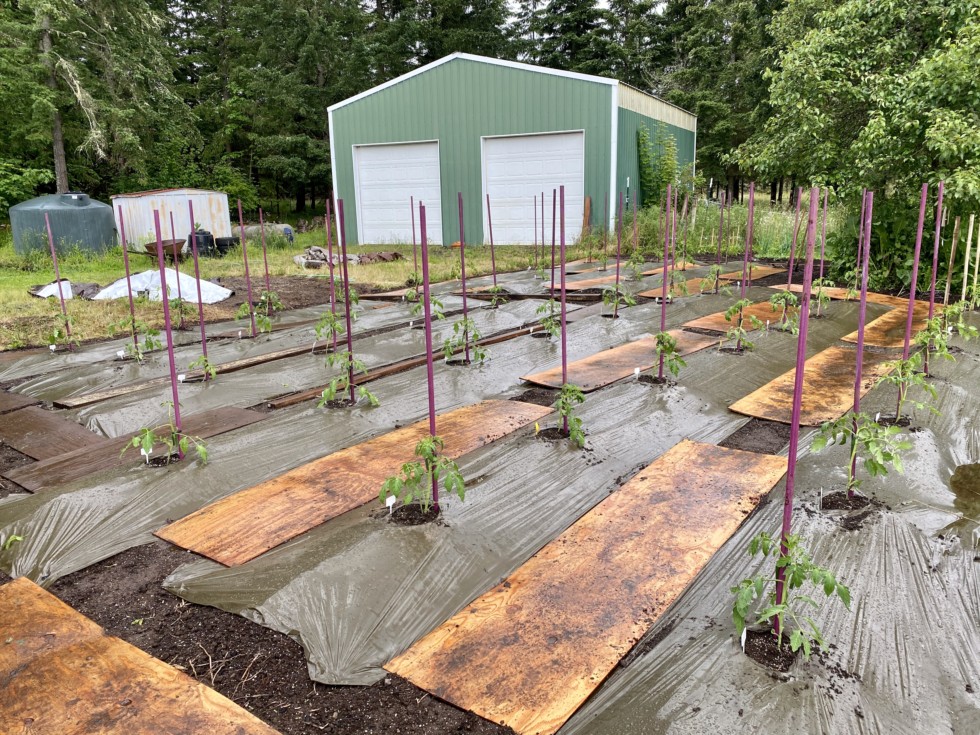 And here we have it! Forty-three comp tomato plants. Planted in the pouring down rain of course. Three 5 gallon bucket tomatoes also. Next up will be drip lines and temporary fencing. Something tells me I should of installed fencing first. Warm weather is finally here this week.