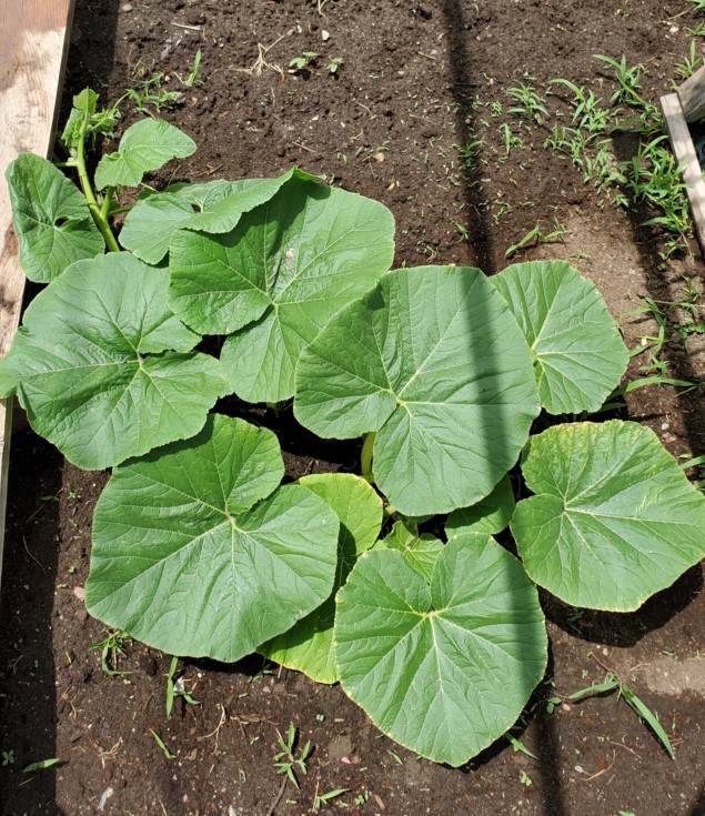 The 1810 Werner is growing good now and pushing 5 feet long. Male flowers are getting close to opening. I will train the main vine underneath my walk planks and curve it back more to the west. I have more space on the other side of the planks anyway.