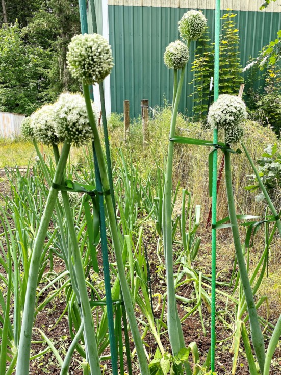 Ailsa Craig giant onion flowers. Grown from the largest onion last year into seeds this year.