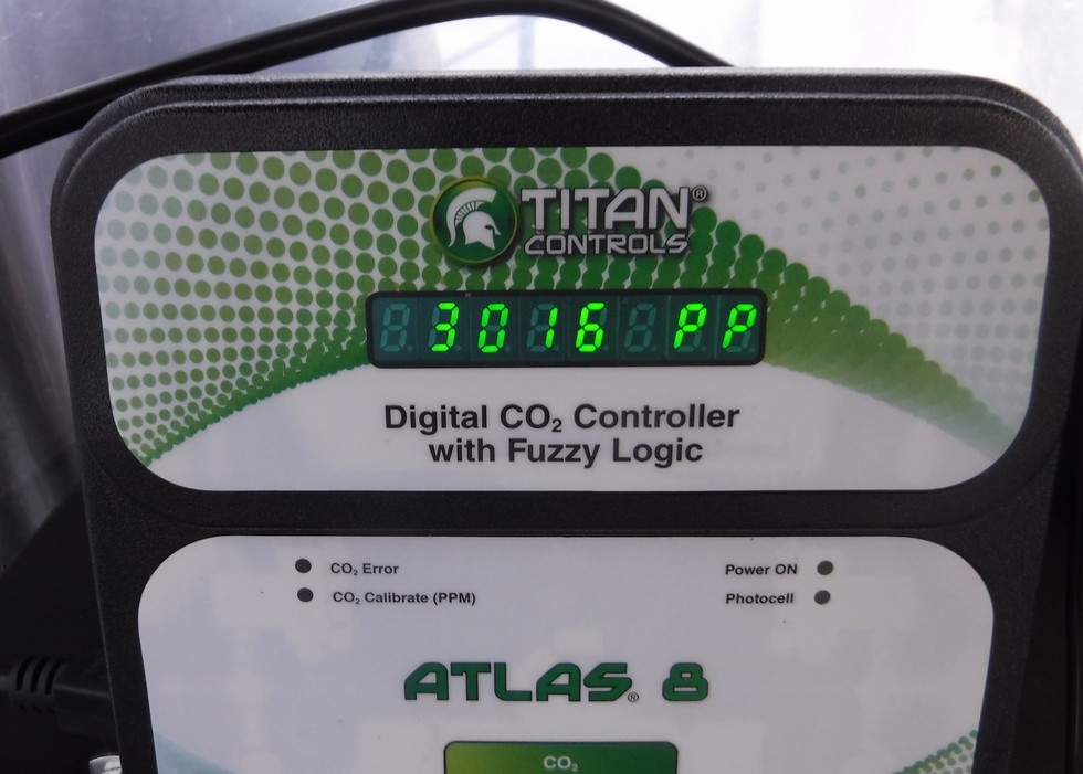 The regulator valve would not close causing what was left in the 50lb CO2 bottle to enter the grow space. (Luckily an entire bottle was not wasted.) The controller reads 3016ppm which is three times the level that the preset is for. However, levels over 5000ppm are considered to be dangerous for humans so even at this 3x the preset level is still not a hazard to being in the structure.