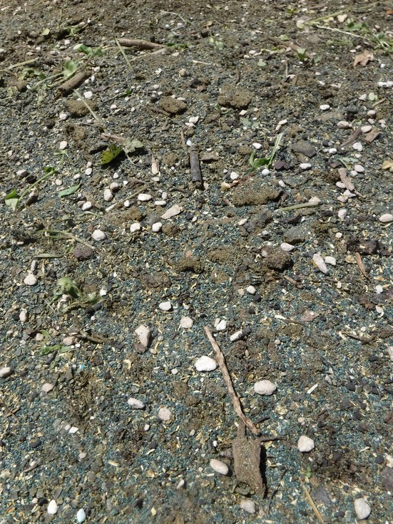 This shows the even spread of amendments on the surface of the soil. This comes from learning how the spreader feeds each amendment. Based on the particle size and density it can impact how the fertilizer will spread. The goal is for an even application of all amendments over the entire growing area.