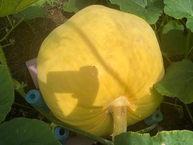 I did try to poke out the worm with a straightened paperclip with the tip dipped in Merit75. Not going down without a fight, but once you started digging the tunnel was much bigger than the small frass above. I will certainly give both pumpkins a chance to scar over. Thanks to Jeff Uhlmeyer for sending the seeds. It was a fast growing plant with a really thick main vine.
