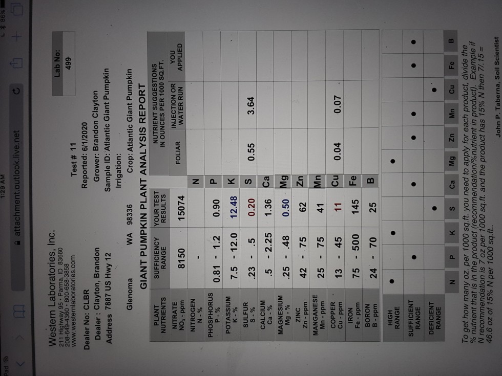 Here are a couple tissue tests. This is the tissue test for this year's 972 Marvin squash about a month ago.