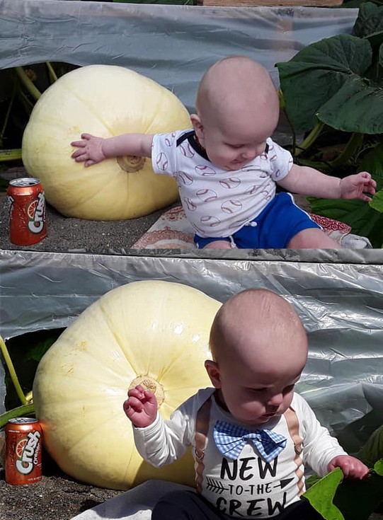 here is 5 days of growth on the 571 Grubbs. It put on 13.5" of circumference and an estimated 40 pounds for a daily average of 8 pounds per day. That's actually not great growth but we had a terrible stretch of weather. Monday though Thursday were all overcast and or raining and we didn't even break 60 degrees for daytime highs. Friday and Saturday had some sun but it was still cool staying in the 60s. The Pumpkins need sun and warmth to really pack on that weight.