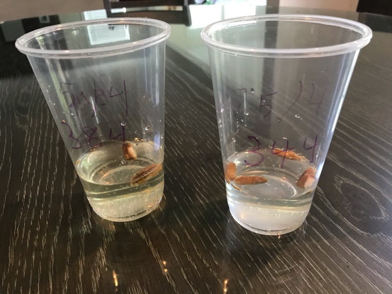 I�m growing a 384 Terry and my 344 Price. I soak them in straight hydrogen peroxide for two days to reduce chance of seed borne disease. This will be the first time ever growing one of my own seeds.