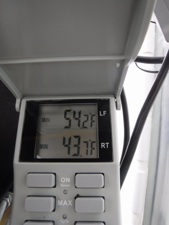 The heater prevented the temperature from every getting below 54F despite it being consistently in the 40�sF (~6C) at night. A cool down at night can be beneficial to the plant, but the goal was to have the cool down be no lower than 55F (12C) so it looks like the thermostat is dialed in.
