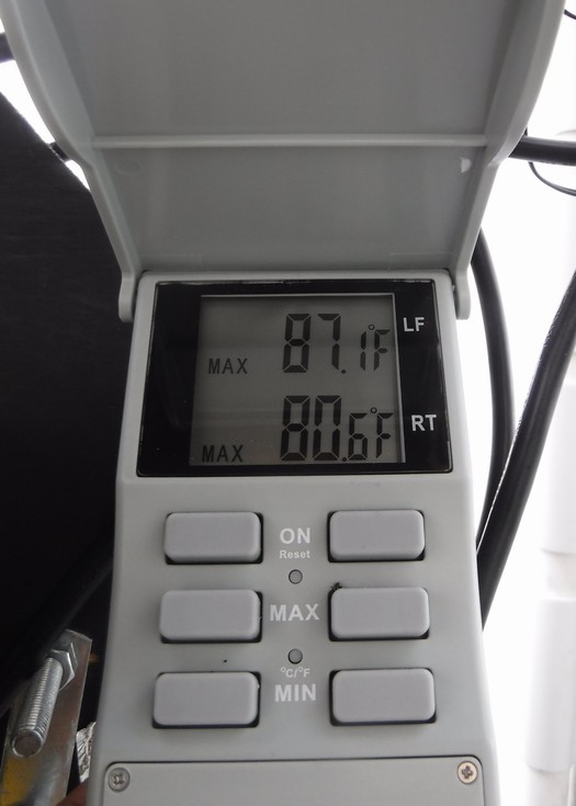 Even though it has been a very cool spring it is important to still have a functional cooling system. When the sun come out mid day breaking through cloud cover the temperature inside the structure can easily spike upwards. So, in addition to the heater there is an independent thermostat to control the exhaust fan. Goal is to not let the temperature get over 90F (32C) so again after some tweaking and adjustments it seems the cooling system is also dialed in.