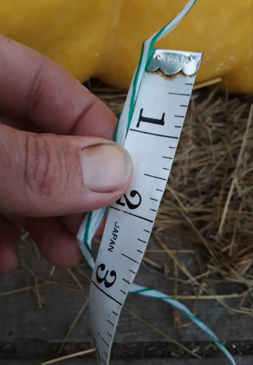 Measuring the distance between the crimp marks is easy. Then I can calculate the new circumference and the approx. weight gain. The formula is (circumference, inches)^2.61374 x .001517.