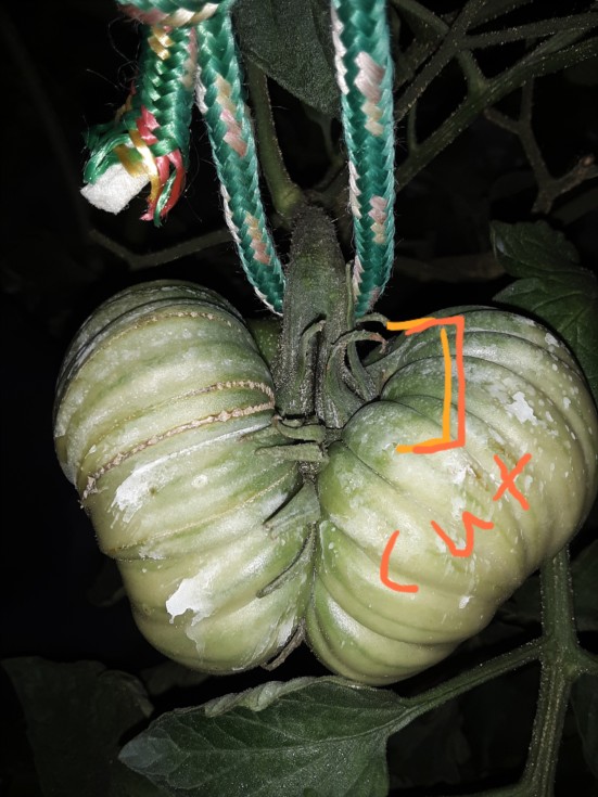 I have tried a tomato lobotomy of sorts I am very concerned about the stem pulling off on this one. I should keep it dry & keep dew off also because I think water may weaken/ soften the stem. The cut may not have helped, but thankfully I doubt I hurt it either... I was very careful to give each half the correct portion of the stem and it went as well as can be hoped for!
