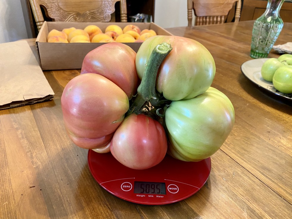Picked this 8.65 Schenk today. A big brown spider came running out of the center of it and ran up my arm. I threw the tomato and screamed like a little boy. This 5.59 lb. tomato is beautiful but will never count because it�s not one tomato, it�s two. Needs to show one continuous flesh.