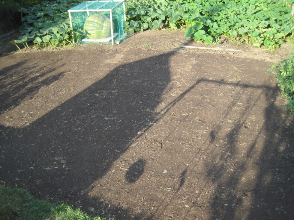 Green manure continued: Yesterday, we have turned the soil (yes, thanks to the availability of a 2nd spade, a very enthusiastic dear helper saved me almost 50% of the time), whereafter I�ve sown rye, clover, vetch and some oil radish, and then finally slightly compacted and watered the surface. Looking forward to seeing some nice greenery grow there, soon. Looking forward even more to seeing a new giant grow there next year ;)