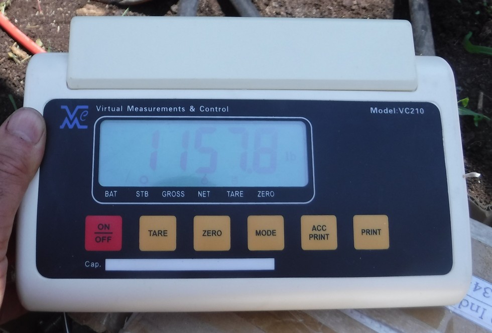 Final OTT was 359� for an estimated weight of 998 pounds. Actual weight (with lifting equipment zeroed prior to lifting the pumpkin) was 1157.8 pounds.