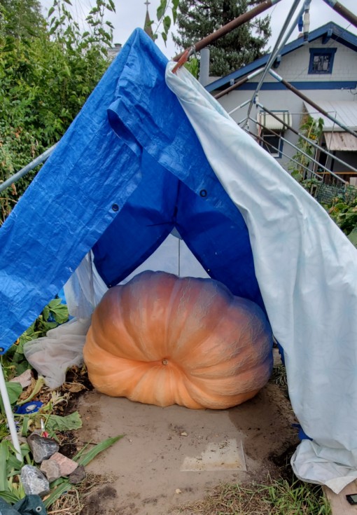 What a crazy couple weeks it's been. We've had drought conditions most of this summer. Dry, hot, no rain. It was a record high 105� last saturday, then the cold blast moved in and we had snow, frost, freezing rain and high temps only in the 30s and 40s Monday night through Wednesday. Then we will be back up in the 90s to start next week. We have some frost damage, but the plants and pumpkins are just fine for the most part. The pumpkins have even continued to grow despite the freezing cold temps. Only 2 weeks until 1st weighoff!