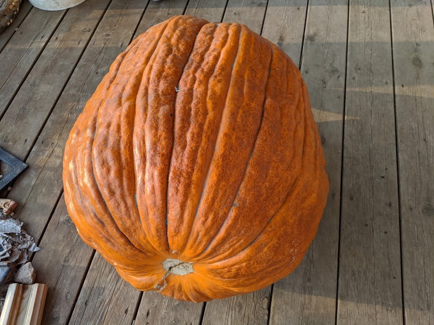 Lost one of our field pumpkins for this weekends weigh-off to BES. This was the early set on the 180.8 Horde that had been hanging out in the patch all summer. Measured 80 lbs, went 86.4 on the bathroom scale.