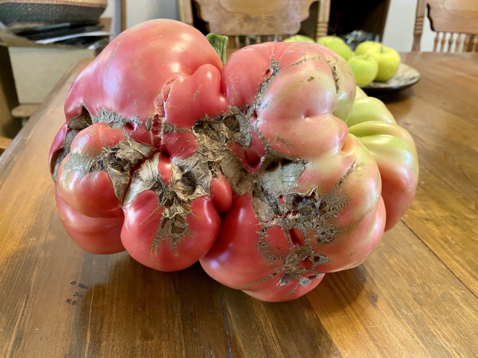 Here is the blossom end. When it was 10 dap it developed BER after a sudden heavy rain. I let it go and kept it dry. Didn�t apply anything to it. Back to a normal watering schedule and it dried up. What you see is the scab over and it never looked back. The other cracking is from swelling after our first Fall rain.
