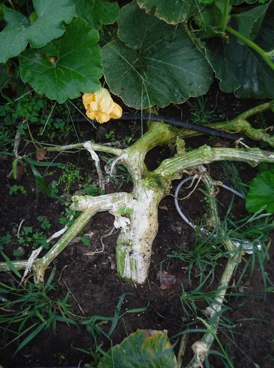 The crown of the plant remained in good health for the entire season. It was covered to allow for limited water splash and for easy inspection, but it is great to see it make it to the end of the season in good shape.