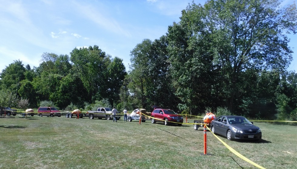 Here is the pumpkin line-up with quite the collection of pumpkins and growers. Here the line-up of pumpkins can be seen. This was a �weigh in the order of arrival� event which made for a great mix of pumpkins and kept things interesting the entire day. All of the planning and coordinating showed as this was a great event to bring a pumpkin to.