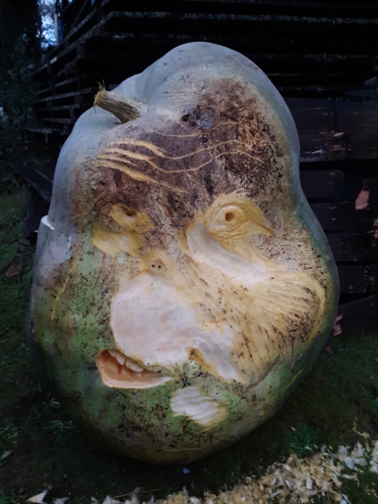 Stop the theft... of Chistmas. My Grinch squash carving I dont have the time or energy to try to finish it. Maybe carving isnt my thing... Kudos to those who have the patience and skill.