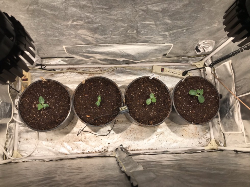 Been a while since updating. I planted my watermelons too deep and had some difficulty. These four have survived and are in my grow tent under two COB LED 3500K grow lights. Survivors include 318.5 Kent, 315.5 Kent, 304 Mudd, and a 290.5 Terry. I have them potted up in 12 liter pots which I plan to leave them in until transplanting into the greenhouse.
